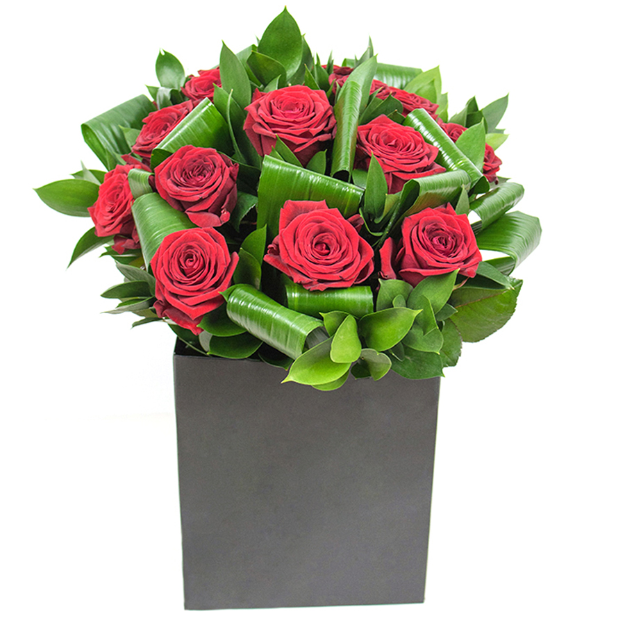 Our beautiful bouquet combines lush red roses, graceful aspidistra, and delicate ruscus to create a unique and elegant display. Perfect for adding a touch of luxury to any setting.